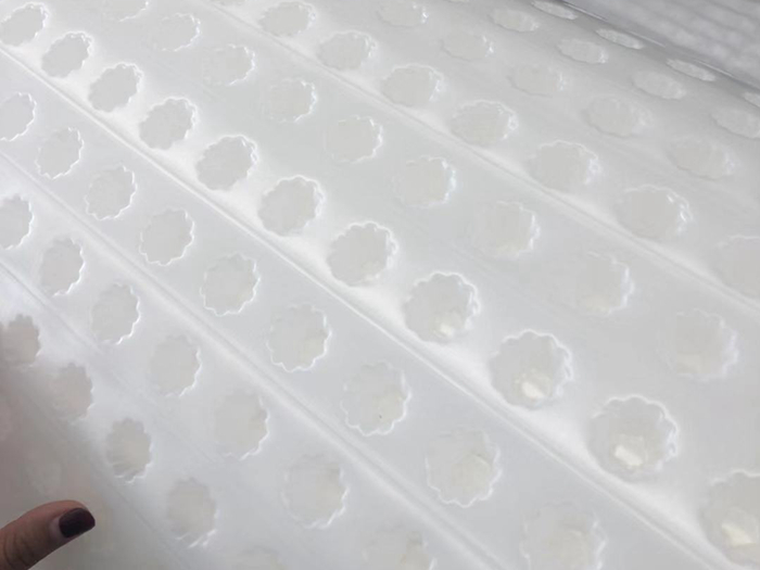 排水板可以利用架空層形成排水、排氣通道,同樣利用架空層達到隔音、隔振的作用,并且排水板使用年限長耐腐蝕、具有滲水滲水、儲水和排水功能隔音通風防潮功能。可以有效地保護構筑物和防水層,并且抵抗土壤中的各類酸堿和植物的根刺,在地下室外墻回填土時,保護建筑物和防水層免遭破壞。還能利用排水板有的凹凸式中空立筋結構,可以快速有效導出雨水,大大減少并且消掉防水層的靜水壓。